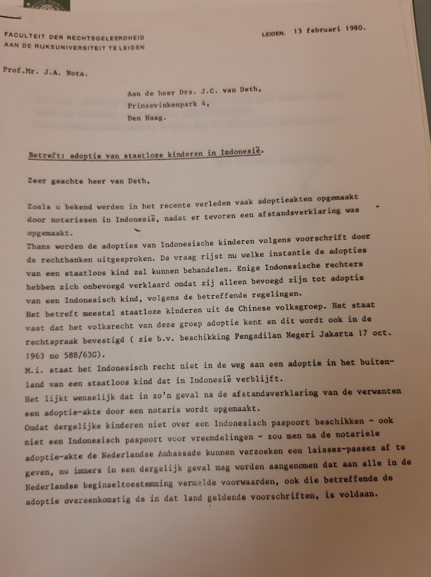 Letter Nota to Van Deth - Stateless children Indonesia (Chinese population)