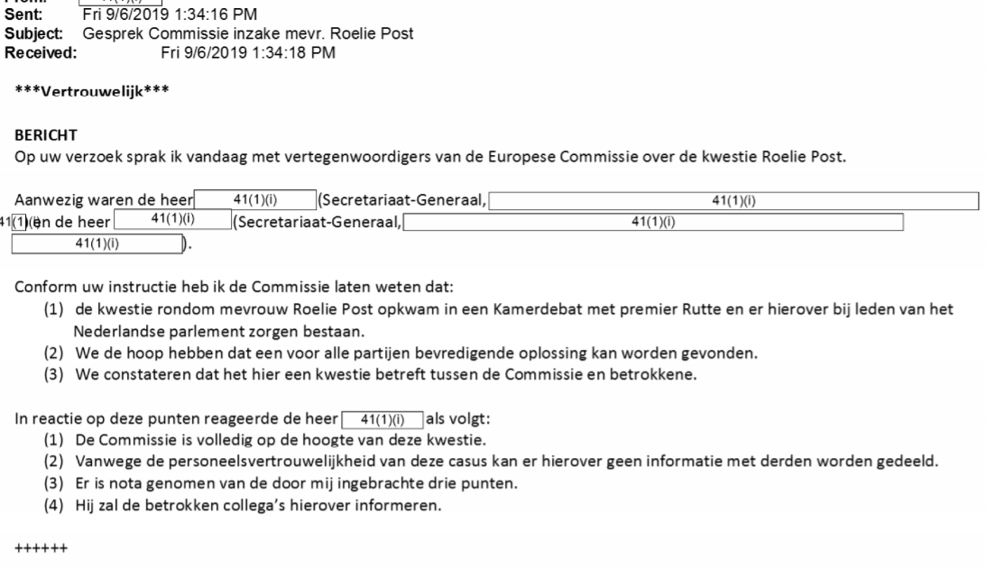 Meeting Perm Rep. - COM about Roelie Post (see also mail 1 Oct 2019) Document type: News paper article Publication date: 6 September 2019 . Persons: Frans Timmermans Attachments Meeting 9 june SG.png (173030 Bytes)