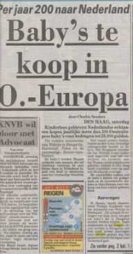 Baby's te koop in Hongarije Source: resolver.kb.nl Publication date: 13 November 1993 De Telegraaf13-11-19933Countries: Netherlands, Hungary Attachments Hongarije 1993.jpg (18092 Bytes) Hongarije 2.jpg (27693 Bytes)