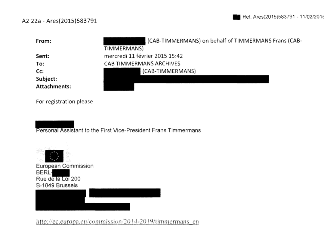 Instruction Timmermans personal assistent - request to register (letter AD/ACT)