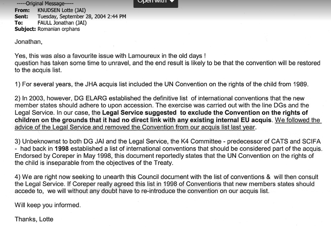 Knudsen to Faull about acquisDocument type: Web page copy Publication date: 28 September 2004 . Organizations: Acquis Communautaire, UNCRC acquis or not?Persons: Roelie Post (European Commission), Jonathan Faull Attachments PHOTO-2022-04-10-22-57-43.jpg (206161 Bytes)