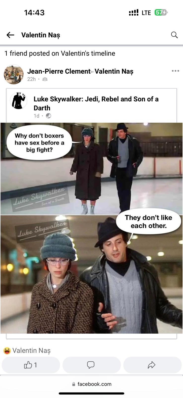 JP Clement to Vali Nas on FB - sexual jokeDocument type: Web page copy Publication date: 13 February 2023 . Persons: Jean-Pierre Clement, Vali Nas (Valentin Nas) (Liviu Valenas) Attachments JP Clement Vali Nas.jpeg (111342 Bytes)