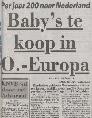 Baby's te koop in Hongarije Publication date: 13 November 1993 De Telegraaf13-11-19933Countries: Netherlands, Hungary Attachments Hongarije 1993.jpg (18092 Bytes) Hongarije 2.jpg (27693 Bytes)