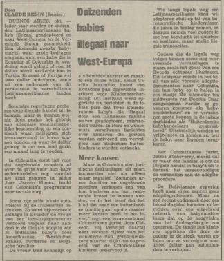 Duizenden babies illegaal naar West-Europa Source: resolver.kb.nl Publication date: 17 October 1981 NRC Handelsblad17-10-19811Countries: Colombia, Ecuador, Netherlands Attachments Duizenden babies illegaal.jpg (33946 Bytes)