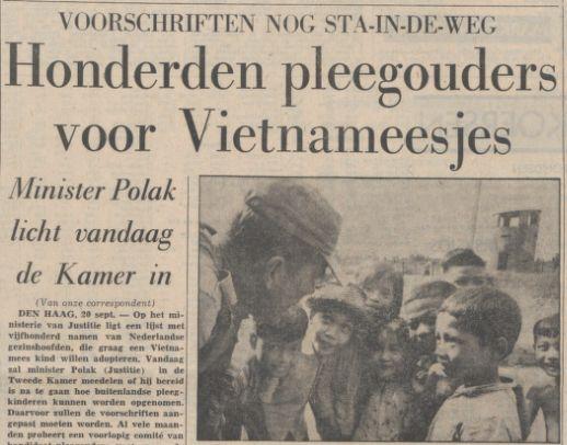 Voorschriften nog sta-n-de-weg: Honderden pleegouders voor vietnameesjes Source: resolver.kb.nl Publication date: 19 September 1967 Countries: Vietnam, South Korea, Netherlands Attachments Vietnam honderden ouders.jpg (41066 Bytes)