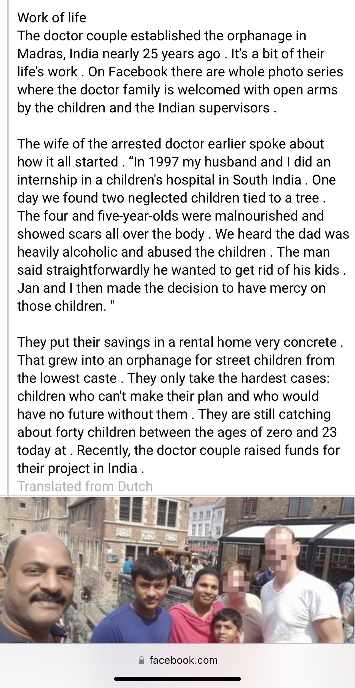 It is striking that twenty years ago an investigation was already underway against the man into possession of child pornography. Jan DV then pleaded guilty, but was not punished. He has remained active as a pediatrician for the past twenty years. His wife is also a pediatrician. In the past they also set up a children's home in India where dozens of children were cared for.